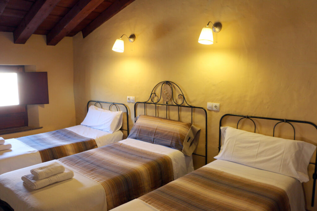 La casa consta de planta baixa i està distribuïda amb un menjador estar amb llar de foc, cuina i un bany complet amb plat de dutxa, on hi ha la rentadora de roba. El primer pis disposa d’una habitació amb dos llits individuals, una habitació amb llit de matrimoni, i un bany complet amb banyera. La segona planta disposa d’una habitació doble amb llit de matrimoni i una habitació triple amb tres llits individuals.
