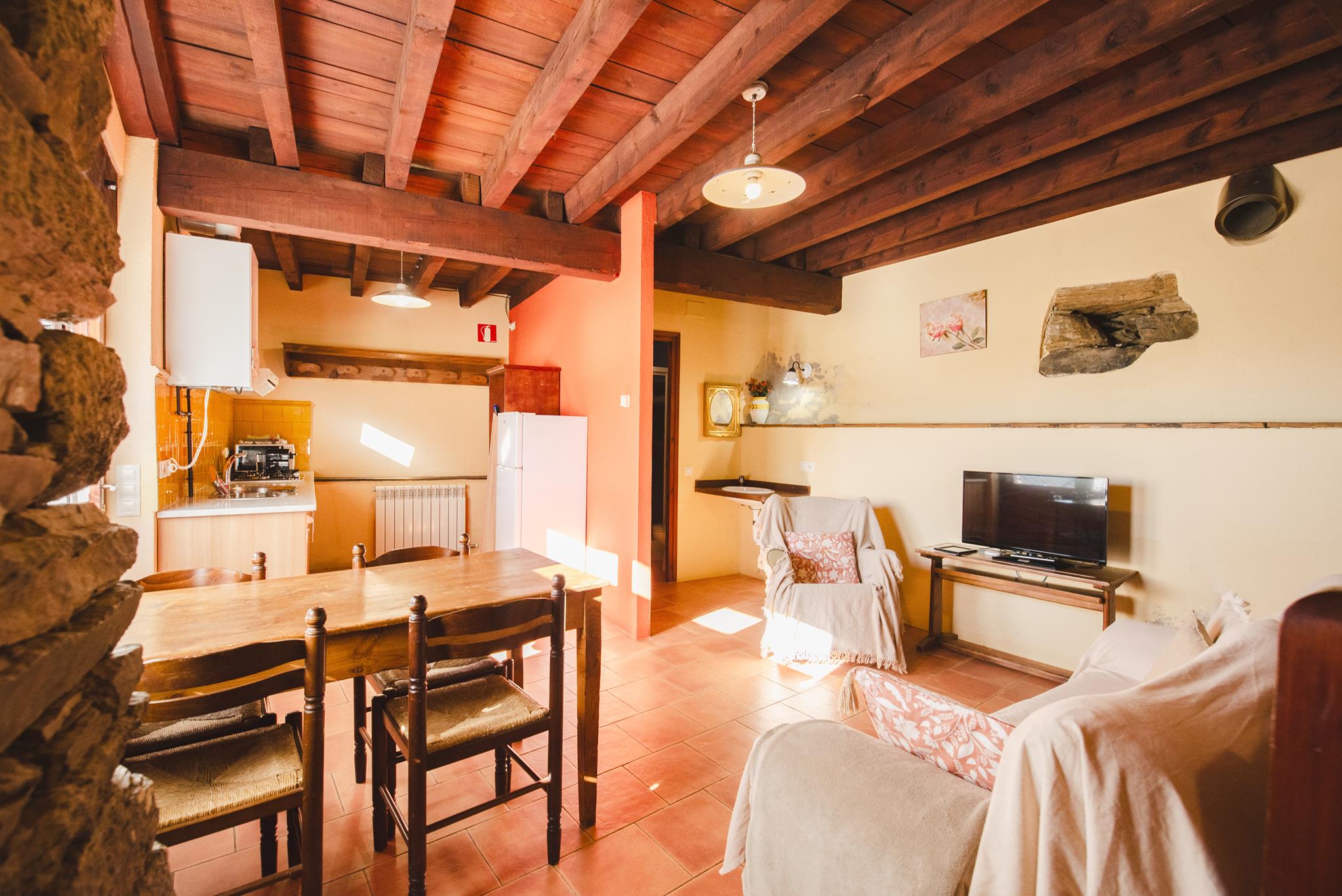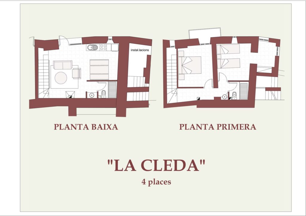 La Cleda té capacitat per 4 persones. Disposa de 2 habitacions dobles, 2 banys complets, una sala d’estar menjador cuina, amb sortida directa a l’era.