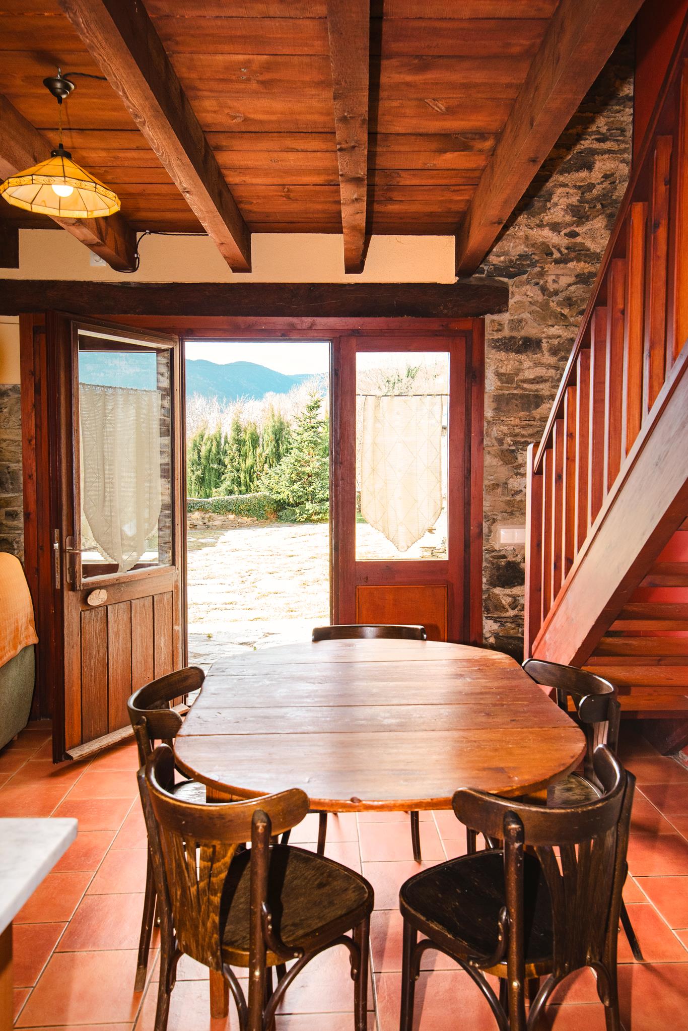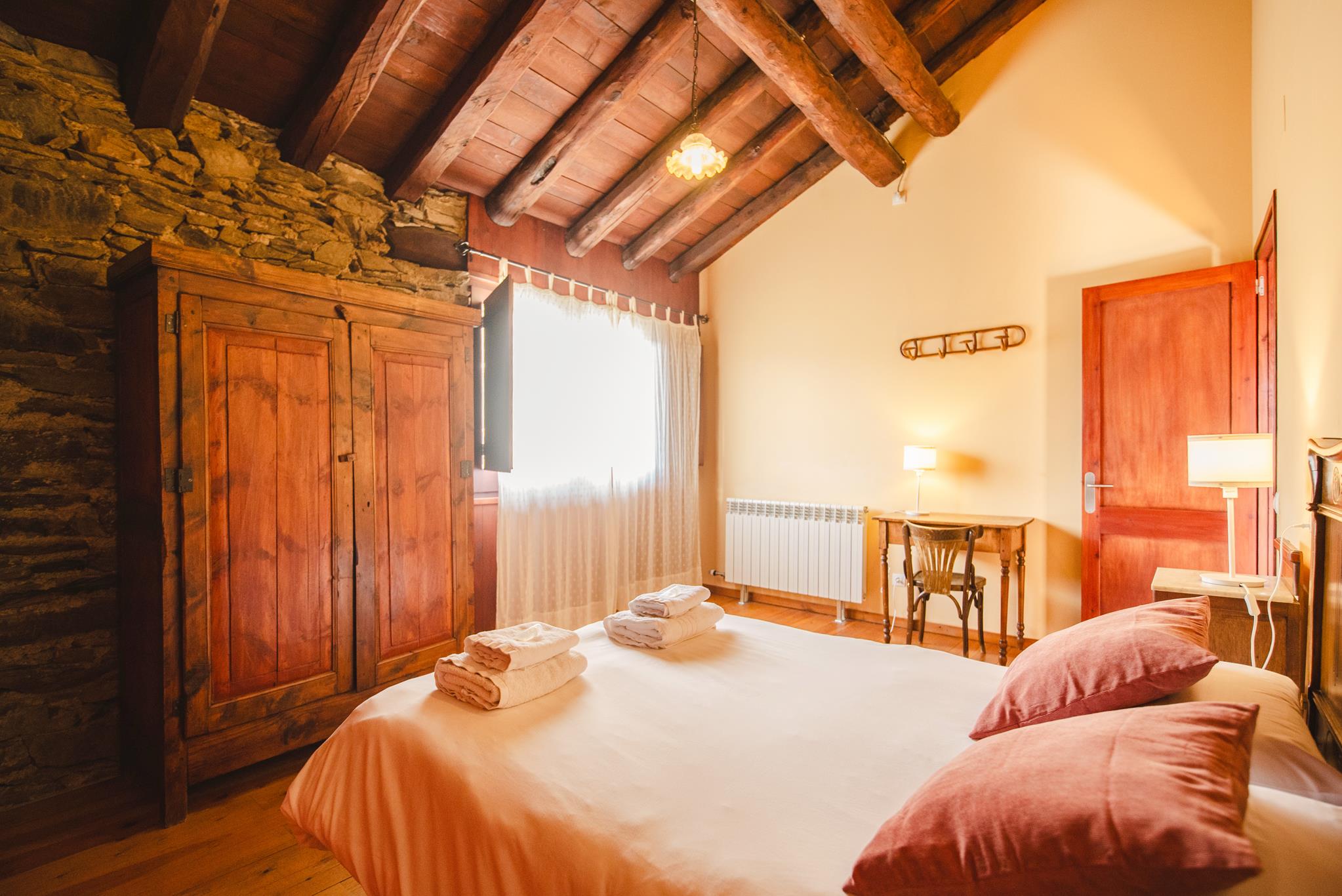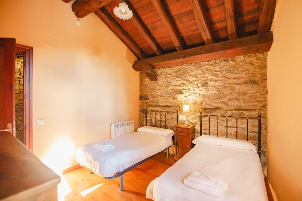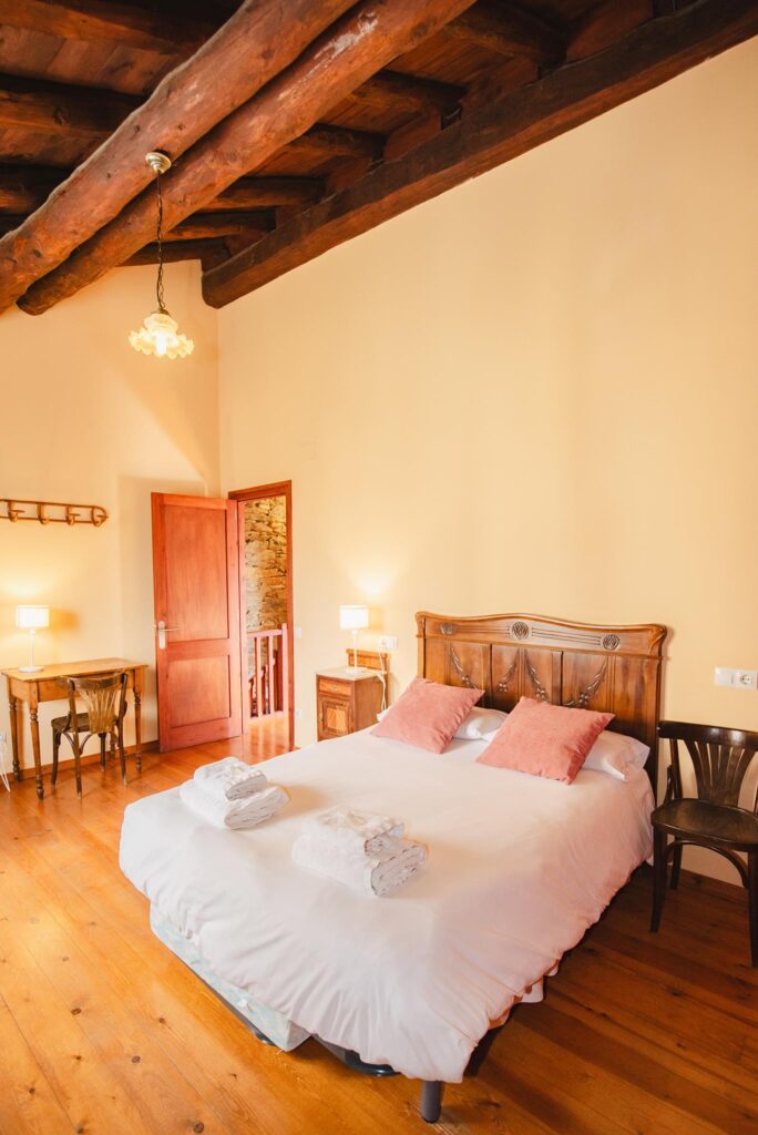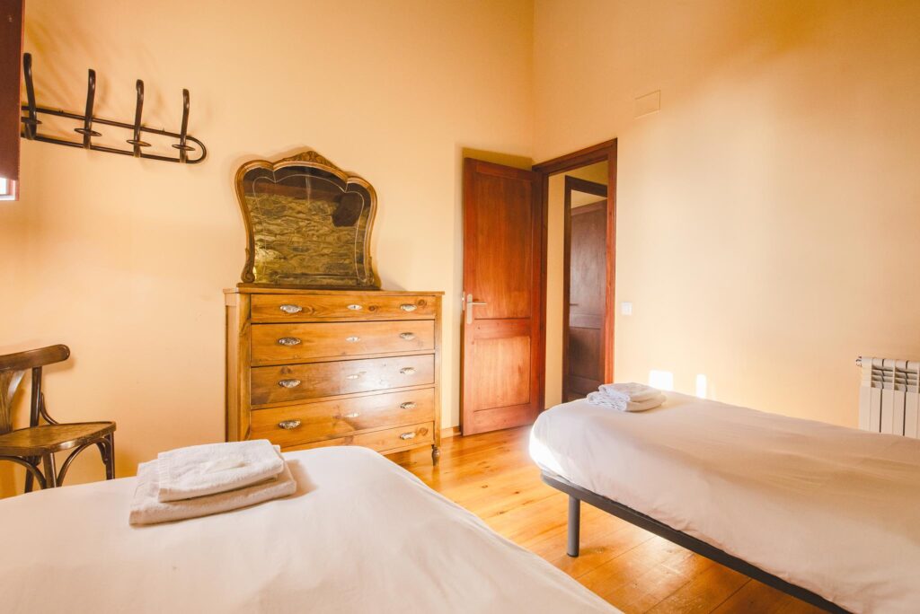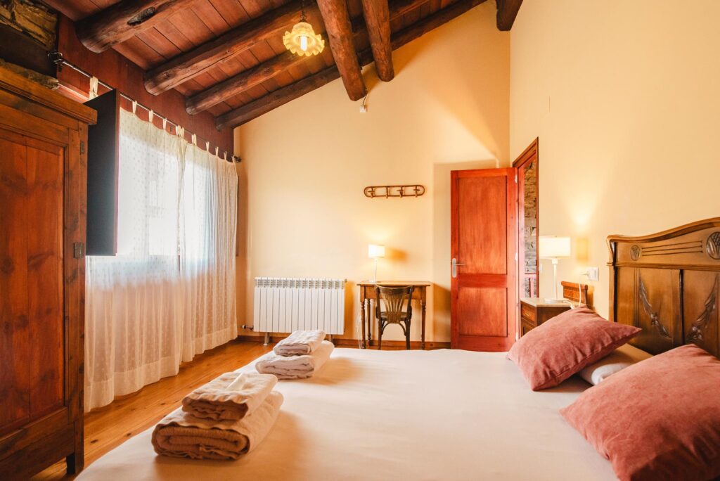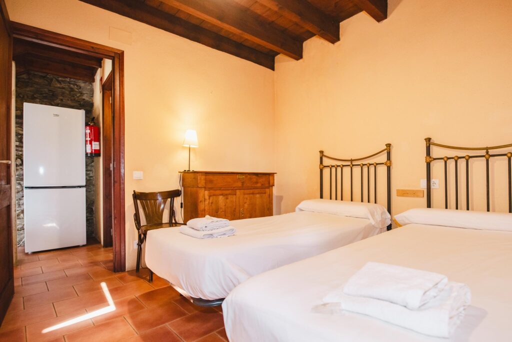 La Pallissa té capacitat per 6 persones. Disposa de 3 habitacions dobles, 2 banys complets, una sala d’estar menjador cuina amb llar de foc, amb sortida directa a l’era amb mobiliari, barbacoes, zona de jocs i piscina.