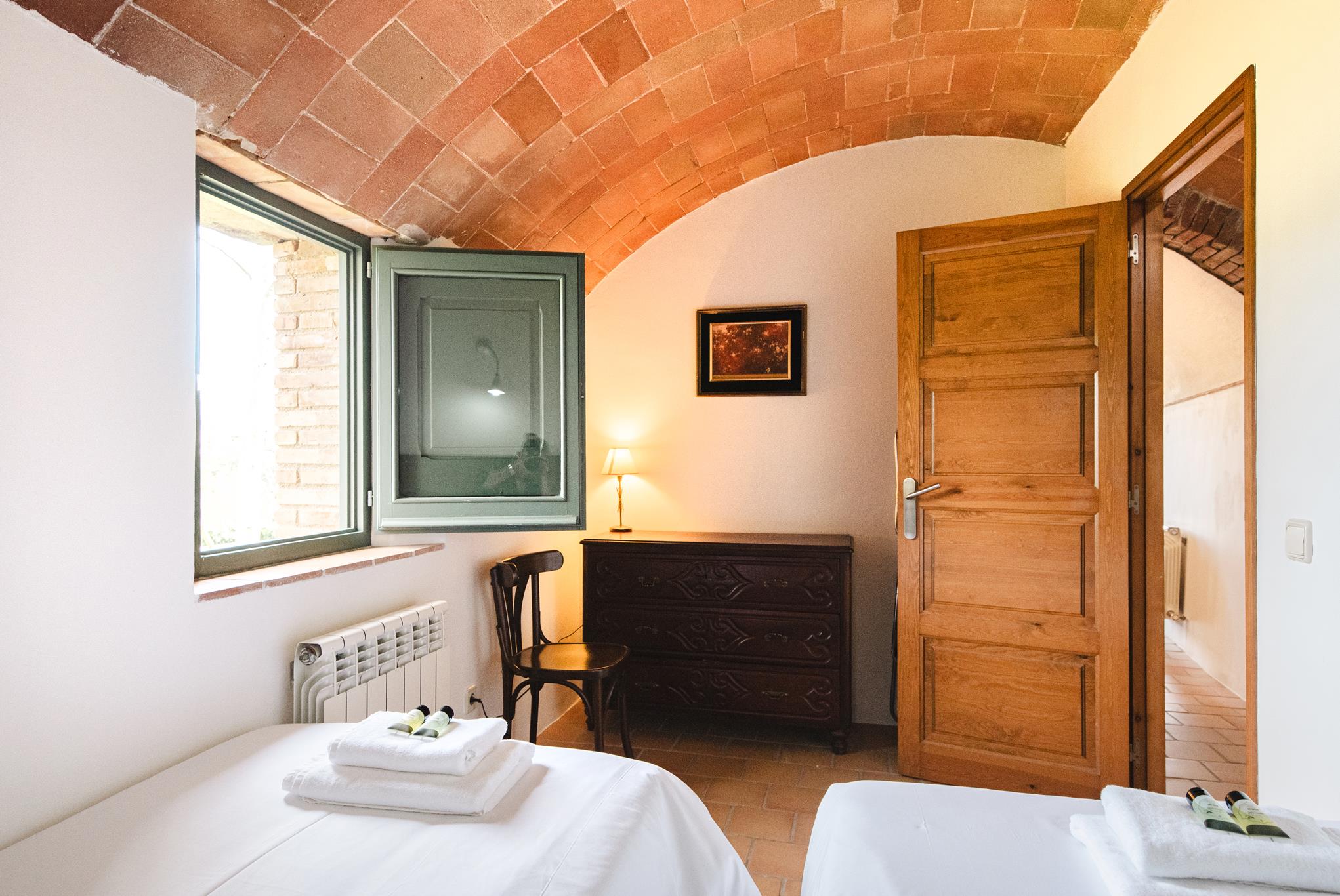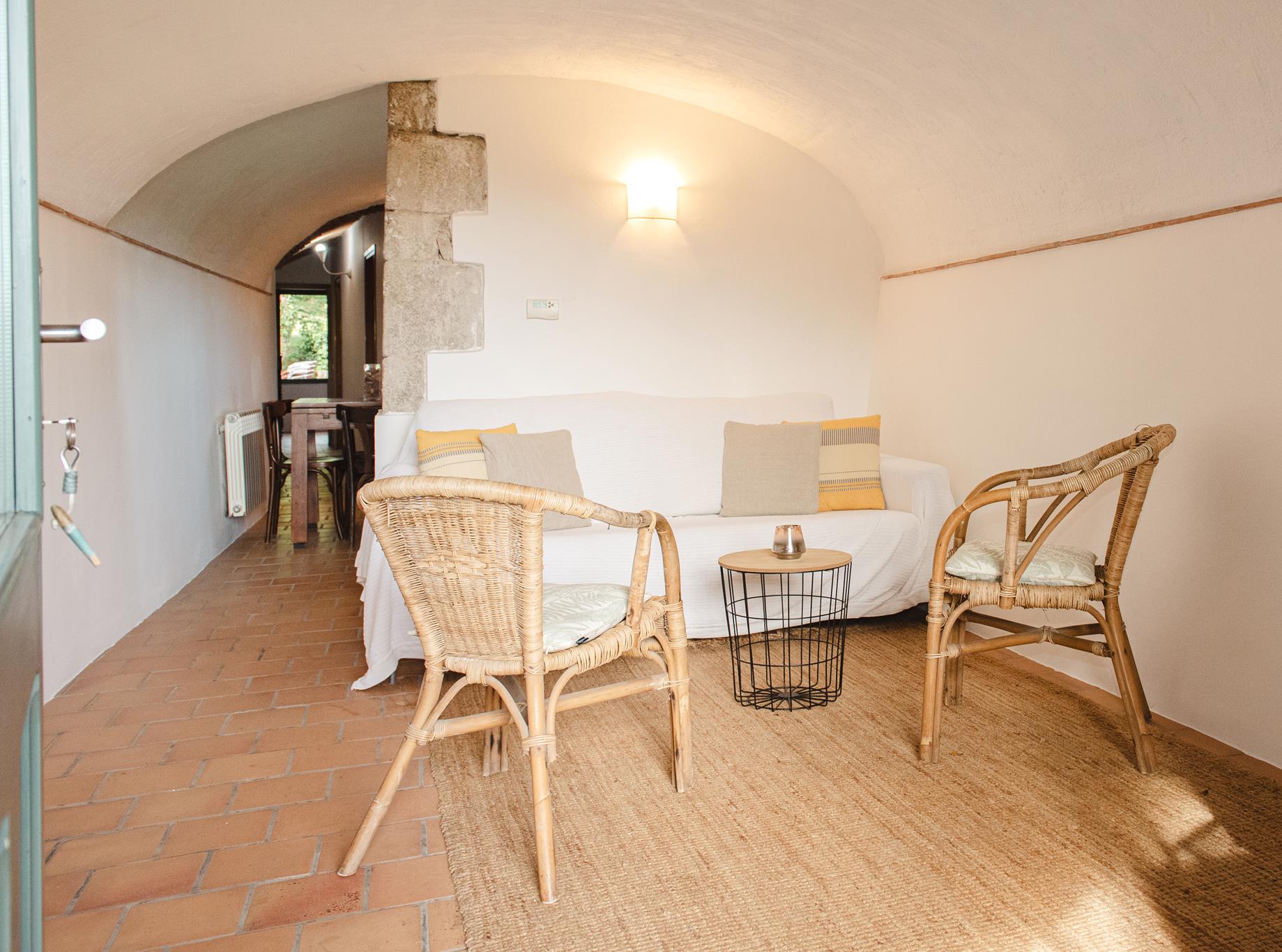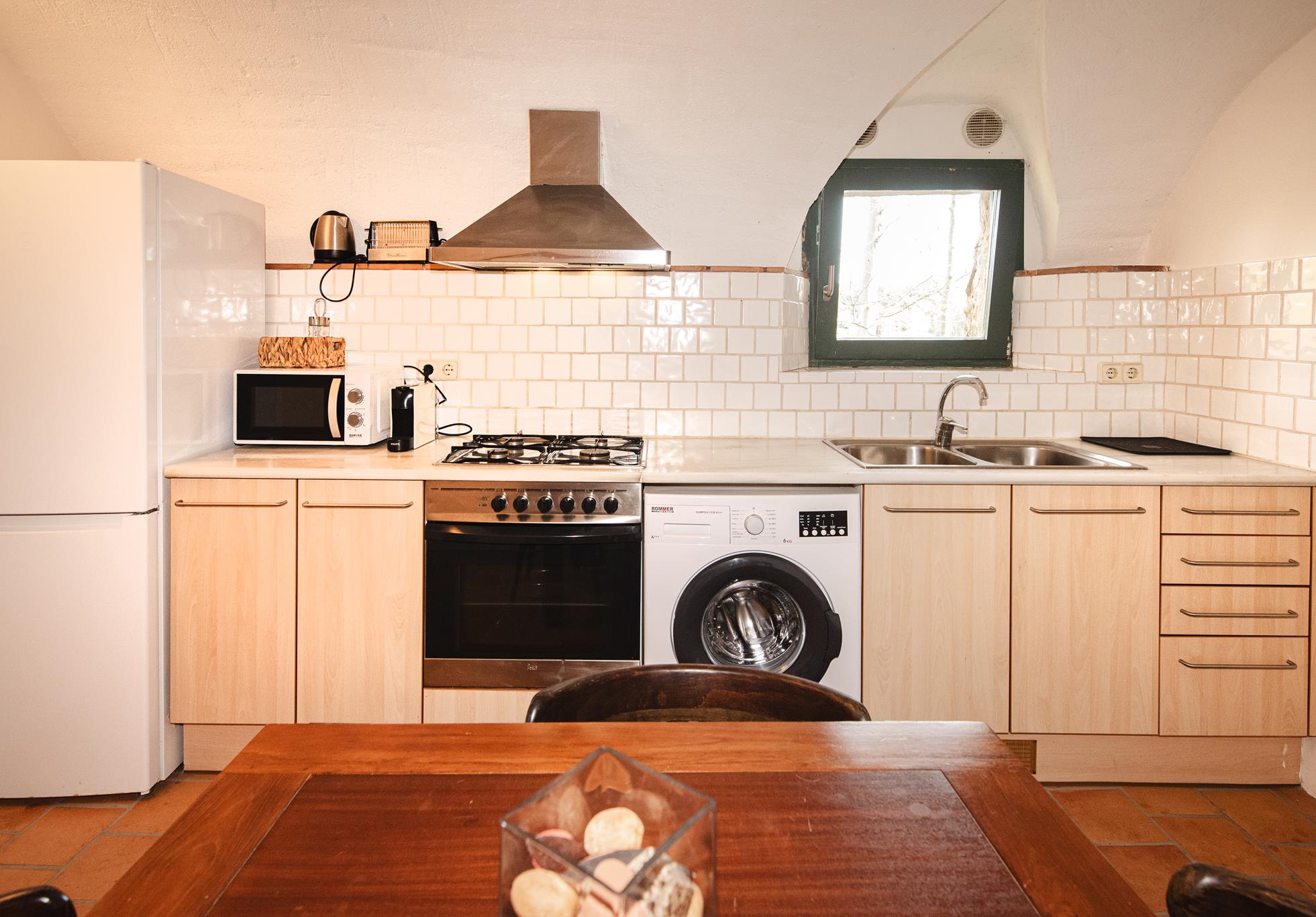 La Cort té una capacitat per 4 persones. Disposa de 2 habitacions dobles, 1 bany, cuina menjador i sala estar oberta a l’espai exterior sota volta.