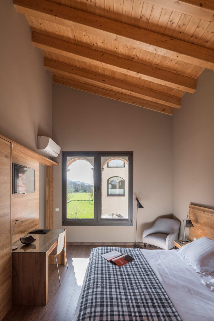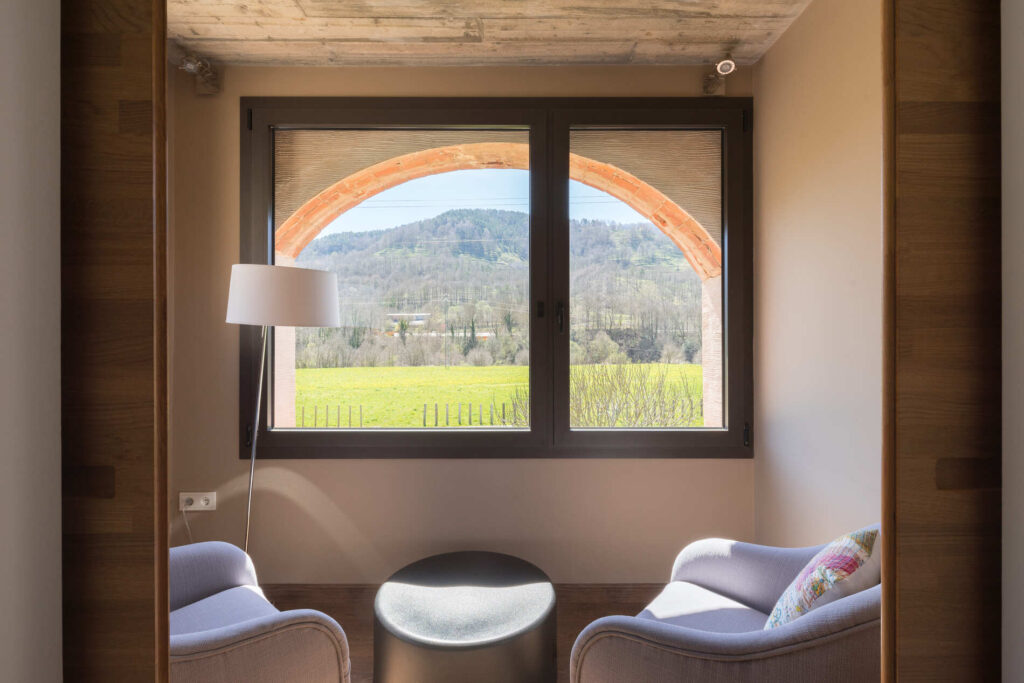 Per completar una escapada rural romàntica, aquestes habitacions disposen d’una galeria interior a mode de salonet, des d’on podreu veure les vistes dels camps que envolten Les Planes del Grau. Un raconet d’ensomni on gaudir de la tranquil·litat i l’harmonia del nostre hotel rural i del seu entorn.